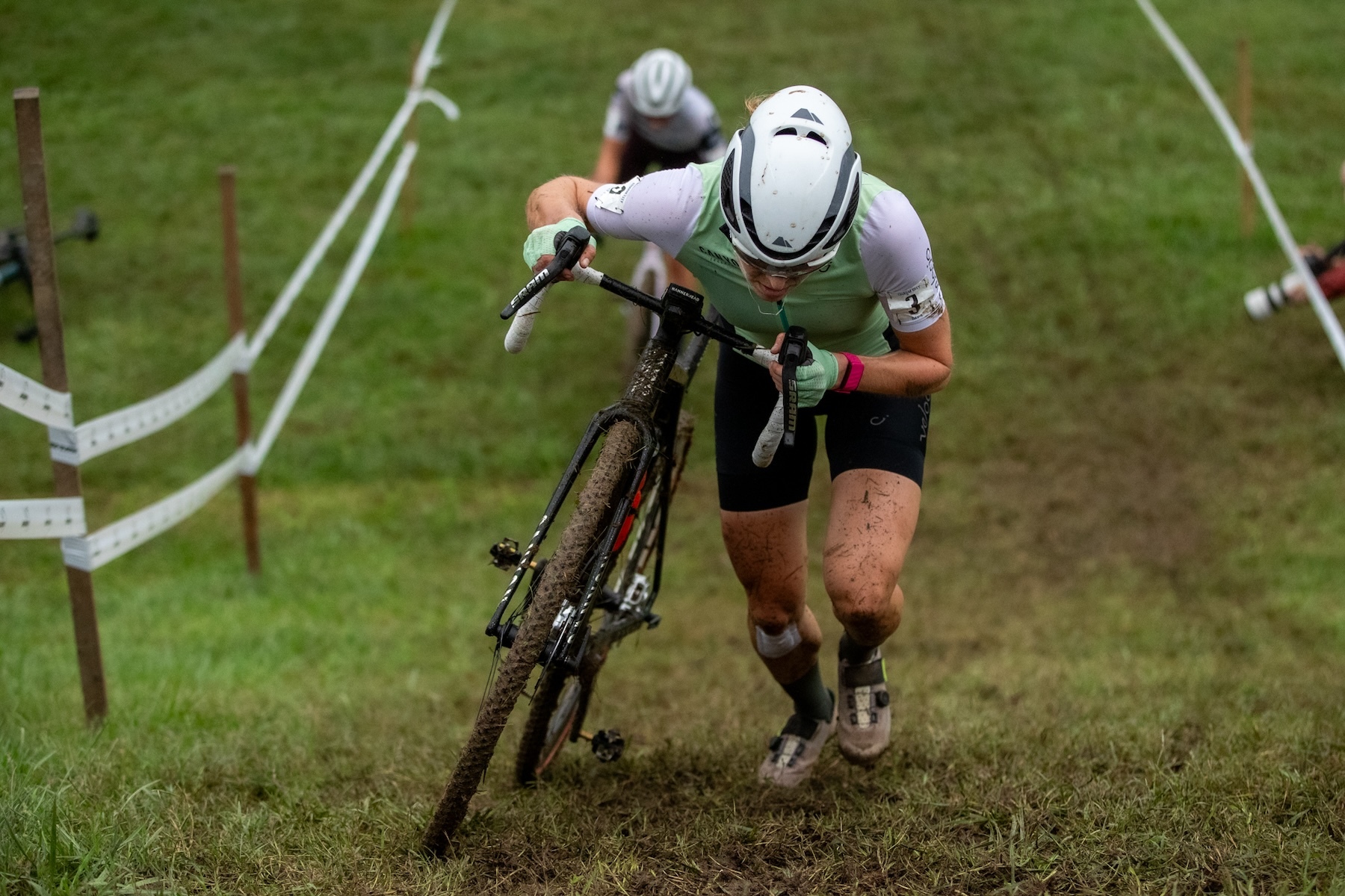 The men’s race saw the course dry out significantly, with far less mud caking bikes and drivetrains. While it wasn’t as fast as the first two stops of the series, the heavy mud and slick conditions that might have been anticipated nearly evaporated. Some sections remained slippery, but it wasn’t the mudfest many had expected.
